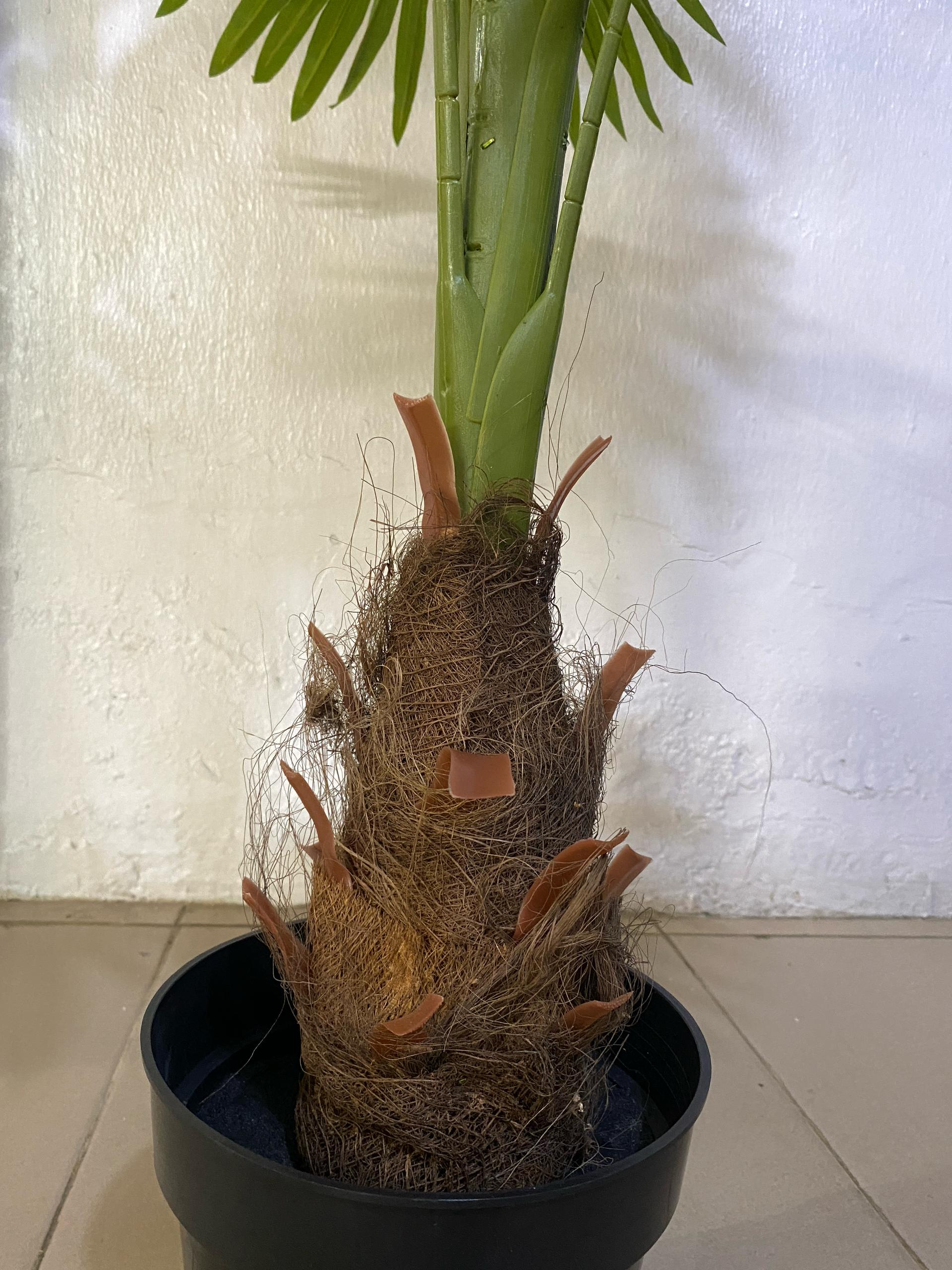 The Faux Mesh Fan Palm 160cm offers a vibrant look without needing sunlight, soil, or daily attention.