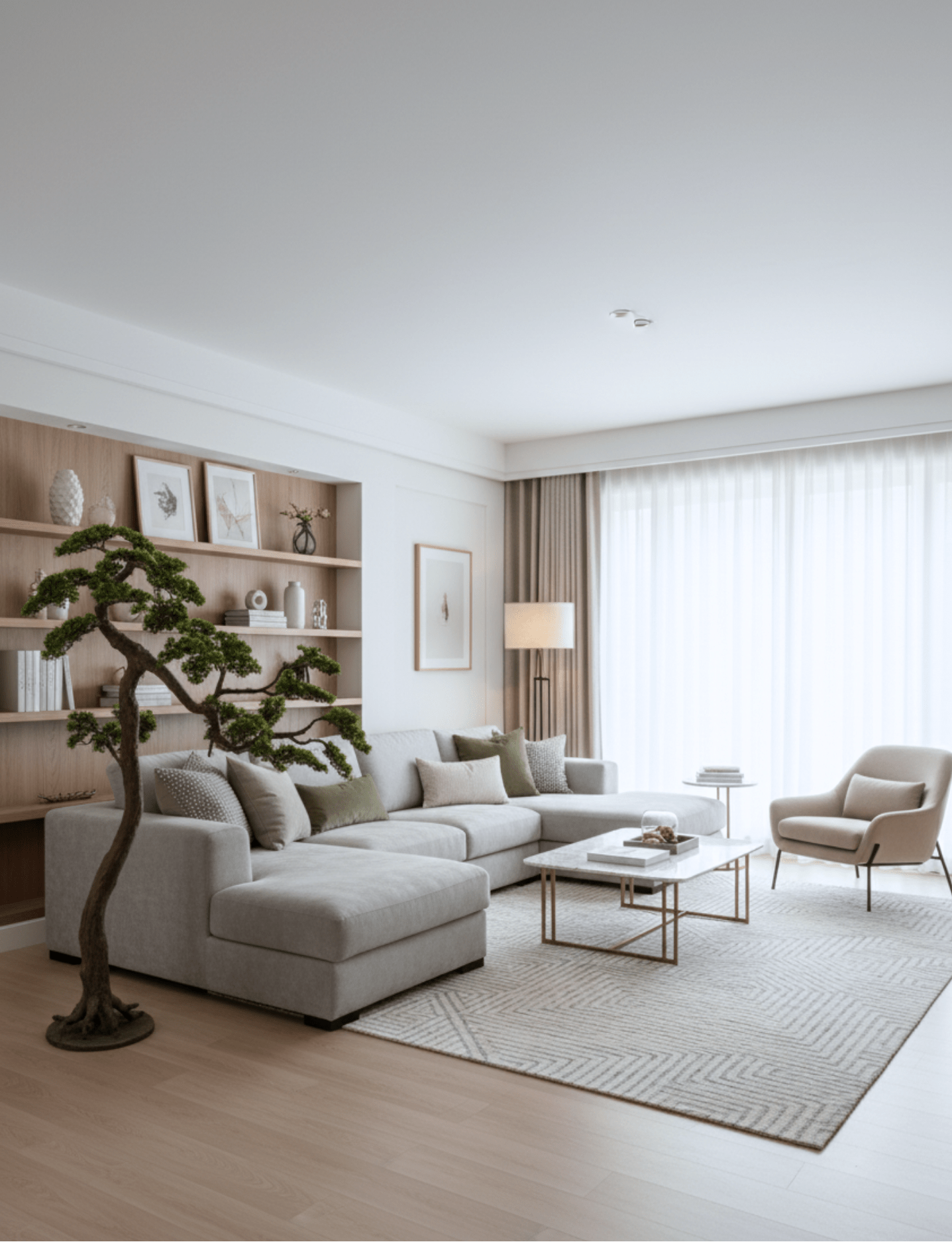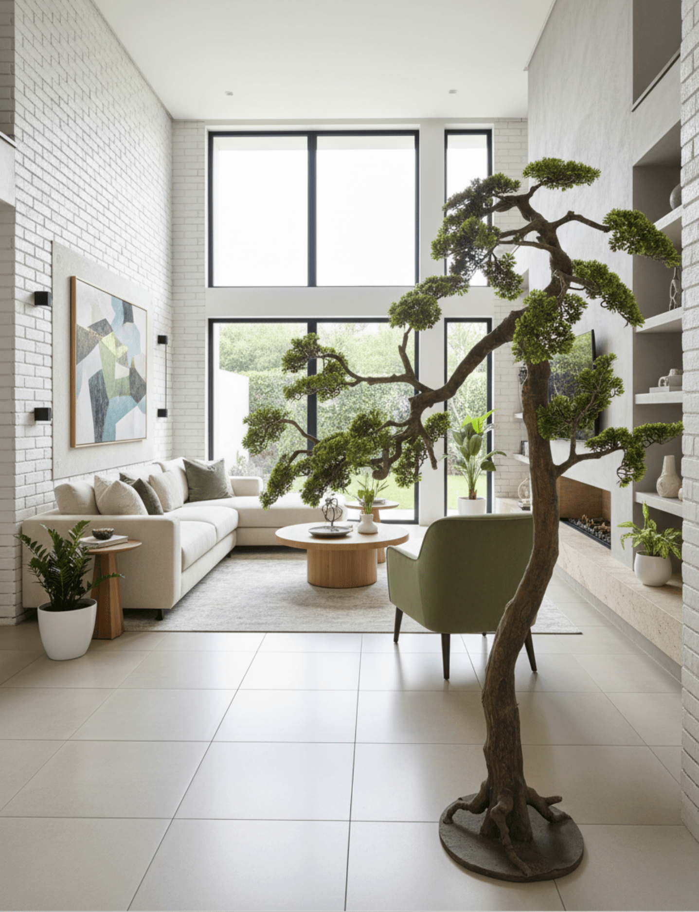 Crafted with PEVA leaves and a PE trunk, the tree offers exceptional realism and resilience. The leaves showcase a lifelike texture and rich green color, while the sturdy trunk mimics the natural contours of a real bonsai. Together, these features create a tree that remains fresh-looking year after year.